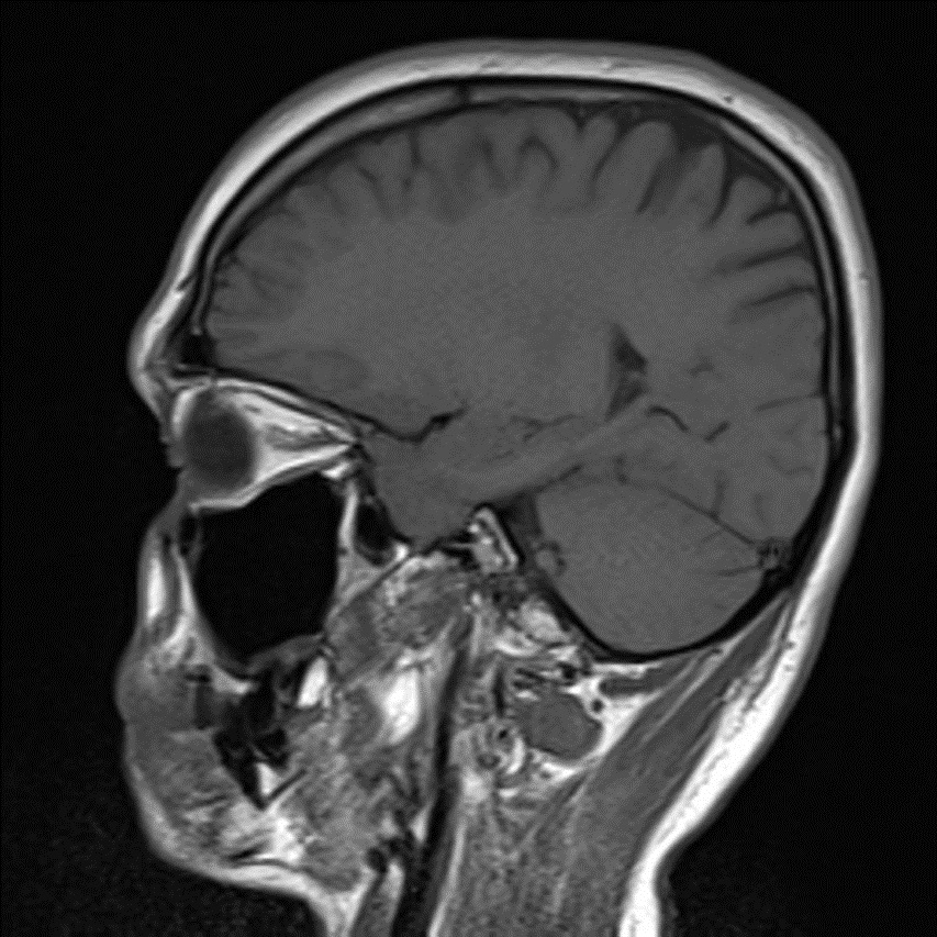 Figure 3: A brain coronal MRI shows a finger like projection of the brain cortex which is designed this way in order to receive the global signal after being condensed and amplified by the thick skull bones.
